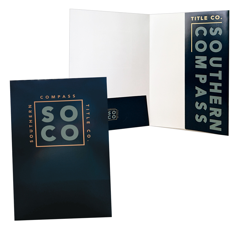 - 9 1/2" x 14 1/2" legal-size folder with one full 5" deep vertical right pocket and one regular horizontal left pocket.