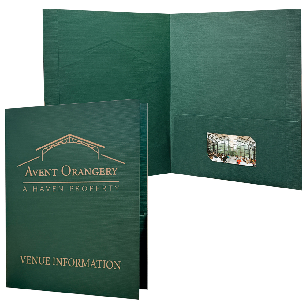 - 9 1/2" x 11 3/4" with one 4 1/2" right pocket and reinforced side edges. Provides extra durability when opening and closing the folder. Full panel on inside left for your copy. Pocket holds approximately 25 sheets.